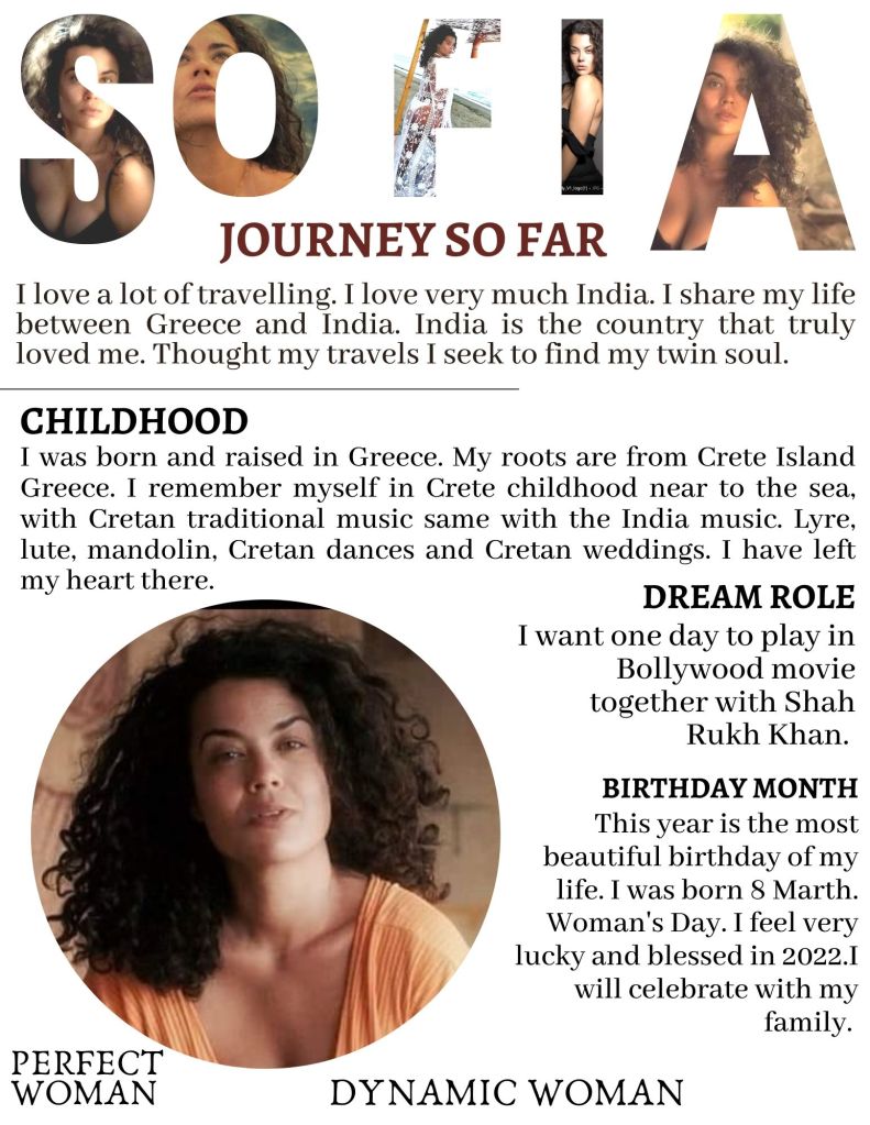 Sofia Spantidaki is a fashion model and an influence born in Athens Greece with Crete roots. She is an actress, model and line producer in Bollywood industry. She had created a space for herself in India film Industry. Millions of Indian people loved her and follow her everywhere. Her efforts and skills have always kept her moves on. She spreads positivity, exudes good vibes and inspires a lot of people. She not only excels in acting and modelling she has also been a cultural activitist. She has collaborated with over several brands. Let’s dive in her inspirational Journey.