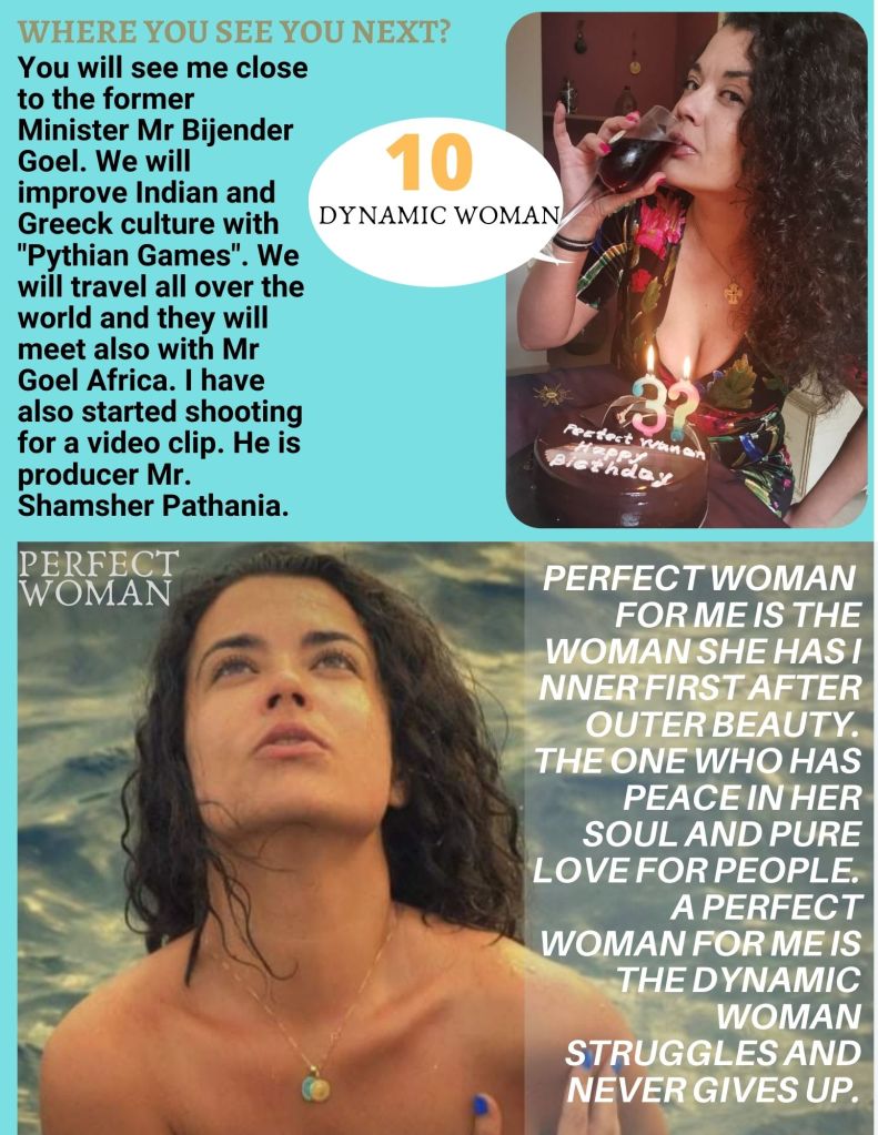 You will see me close to the former Minister Mr Bijender Goel. We will improve Indian and Greeck culture with “Pythian Games”. We will travel all over the world and they will meet also with Mr Goel Africa. I have also started shooting for a video clip. He is producer Mr. Shamsher Pathania.