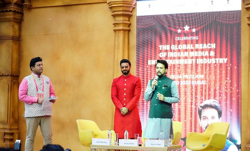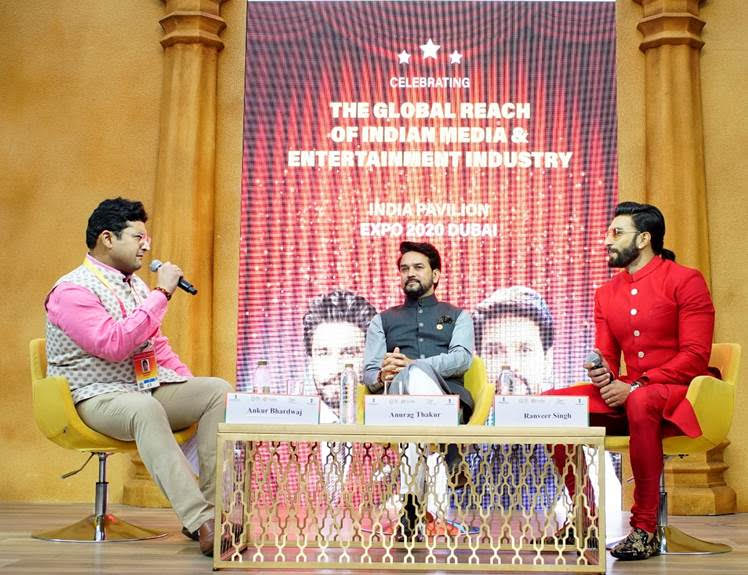 Ranveer Singh visited the India Pavilion at EXPO2020 Dubai yesterday. Ranveer, along with Mr. Anurag Singh Thakur, Minister of Information & Broadcasting (I&B) and Youth Affairs & Sports, Government of India participated in the session, ‘The Global Reach of Indian Media & Entertainment Industry’.