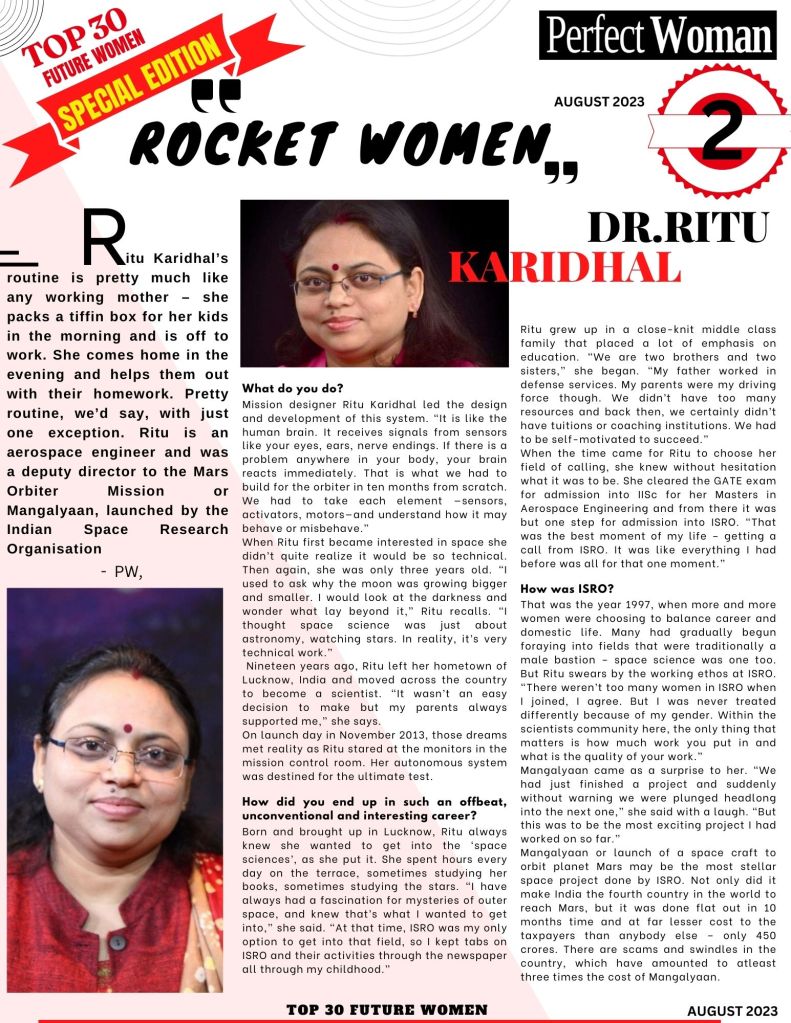 ROCKET WOMEN – DR.RITU KARIDHAL | top 30 future woman August special edition